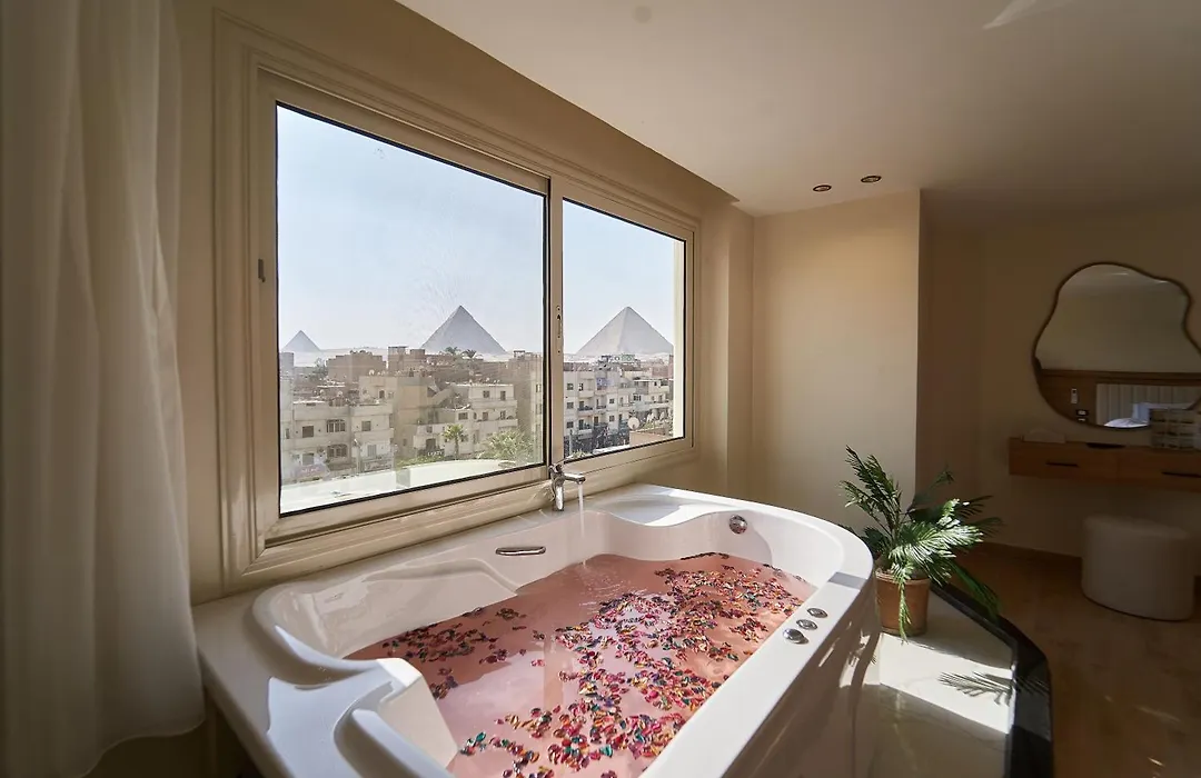 The 32 rooms at the Merak Pyramids are air-conditioned, some of them have sound-proof windows along with tea and coffee making equipment. Guests can take advantage of views of the city.